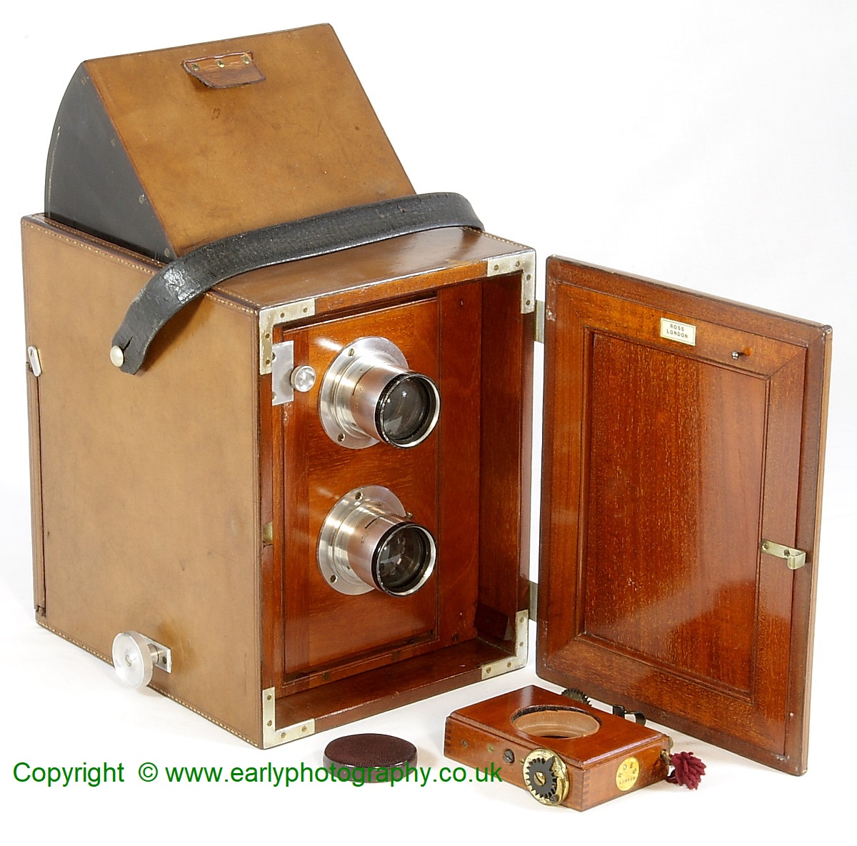 Christie's Cat. 6/5/2005 lot 317. Unusual model with a polished mahogany finish. Christie's cat. 6/10/1983 lot 332. Improved model with pigskin finish, lens no. 59216.